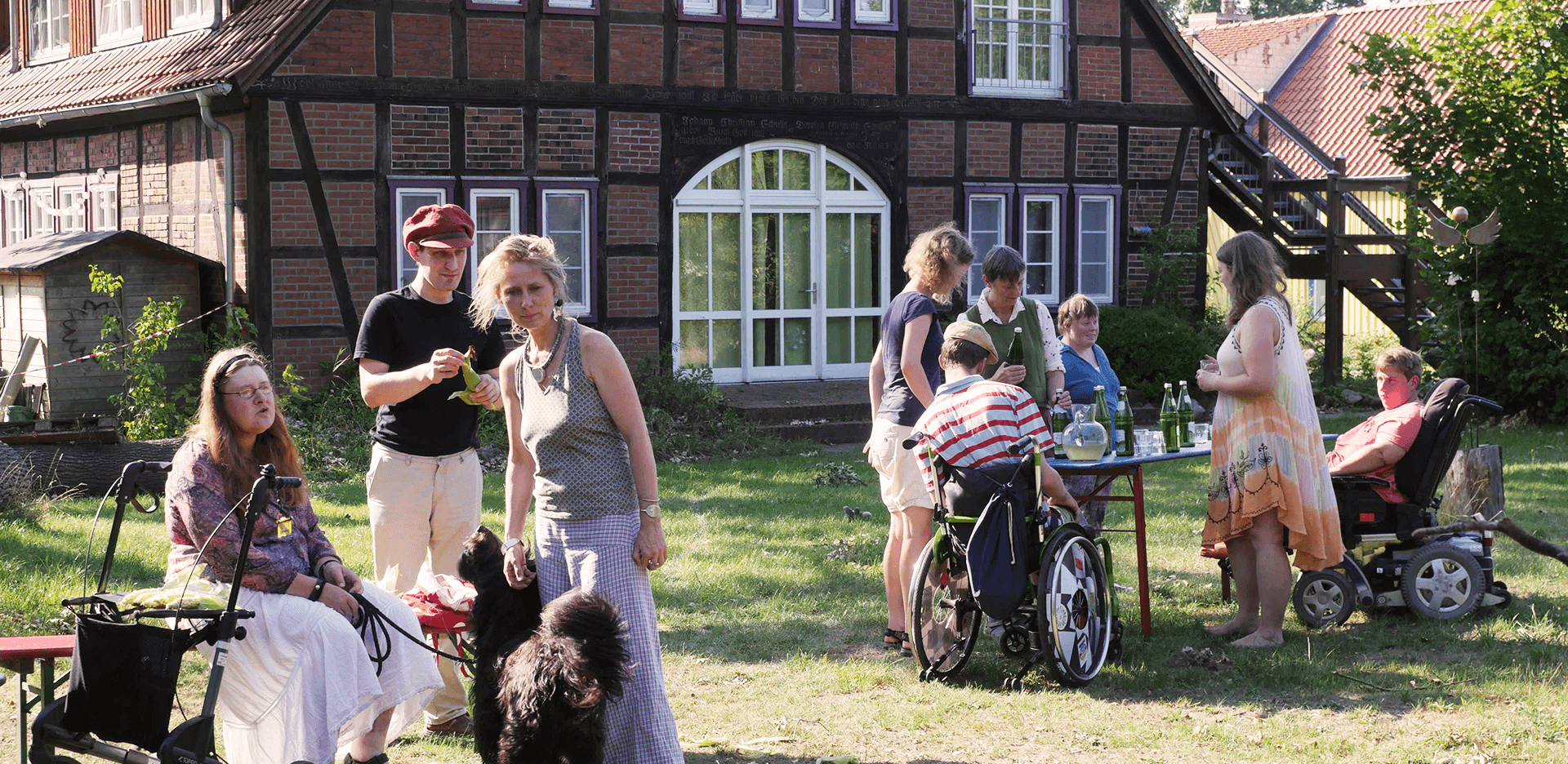 Wir haben etwas Besonderes geschaffen in der Art und Weise, dass hier Menschen mit Behinderung und ohne Behinderung zusammen leben und einen großen Hof miteinander bewirtschaften und gestalten. Es ist ein Lebensmittelpunkt entstanden, an dem die Menschen gemeinsam Mensch sein dürfen und verschiedene Angebote zum Leben, Wohnen und Arbeiten finden und – das ist für uns ein großes Thema – auch in der Lebensgemeinschaft alt werden können. Die Häuser, die in den letzten zwei Jahrzehnten entstanden sind, haben wir schon mit Blick darauf gebaut und gestaltet, möglichst viele individuelle Wohnangebote machen zu können, damit die Menschen hier mit ihren unterschiedlichsten Bedürfnissen ihr Leben so selbstbestimmt wie möglich gestalten können.
